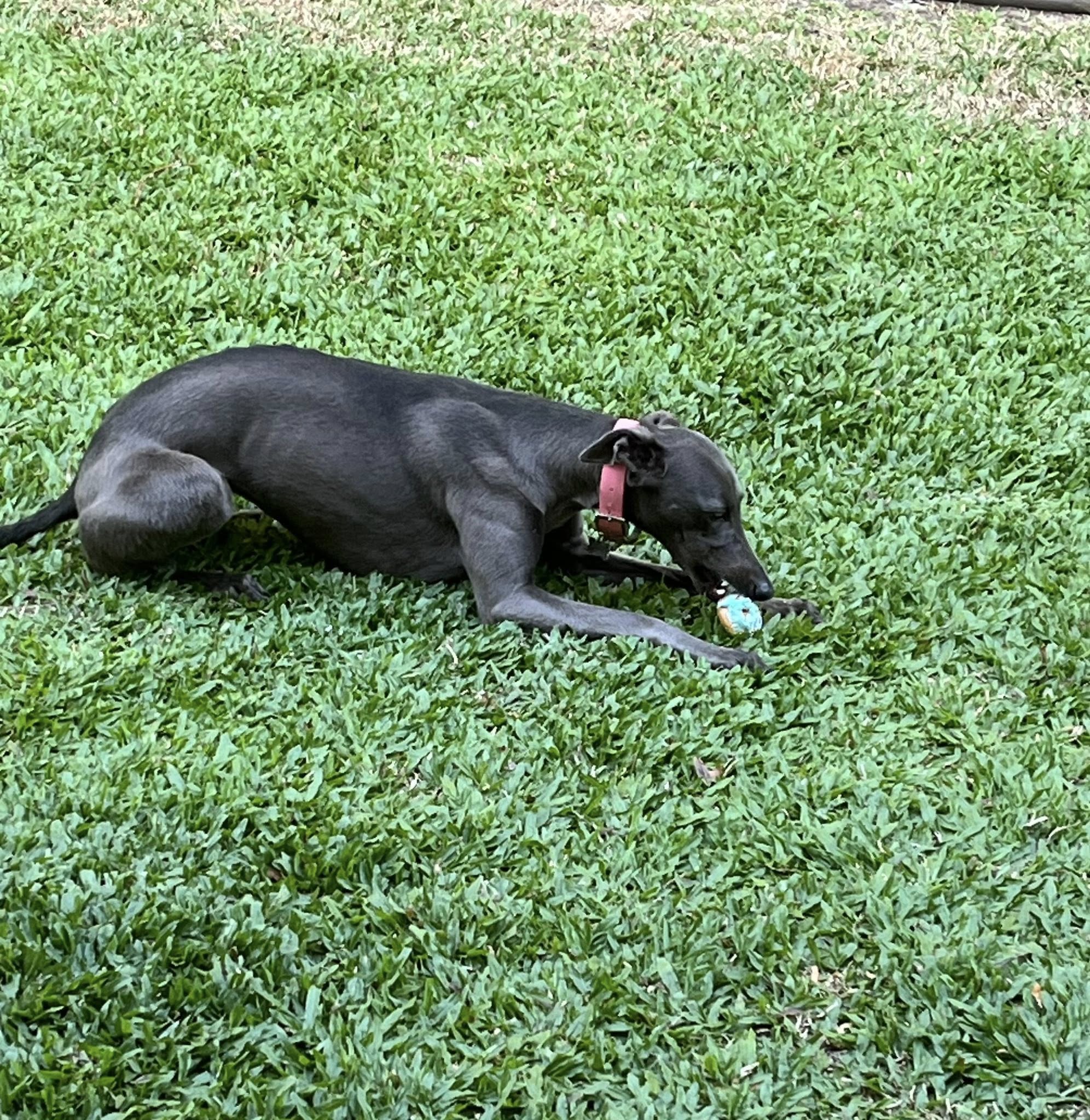 Happy 3rd birthday to our Laci, zombies with her favourite toy, her 🦕 and then her bark day cake and birthday bone and cupcake.