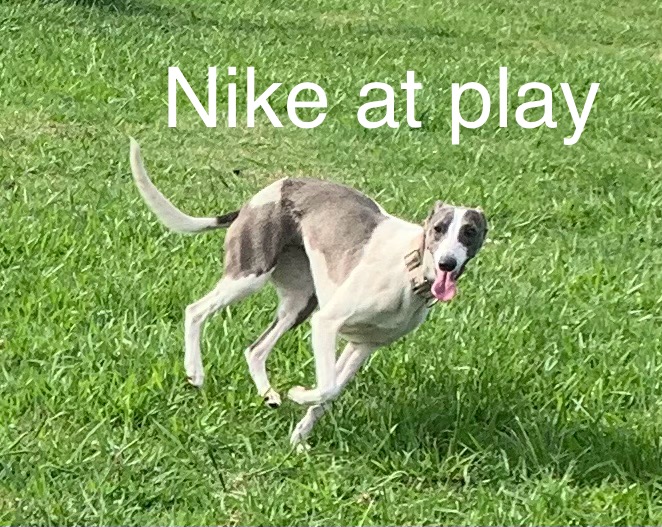 Nike is a ball of energy and is probably one of our fastest dogs. She loves chasing Ruby and snuggling with her at night. She is fabulous on the lead and was a perfect mum. Her dad is Pericles (sometimes we can't tell the difference, except for one obvious detail) and her mum is Harriat (now moved on to a wonderful new owner in Sydney)
